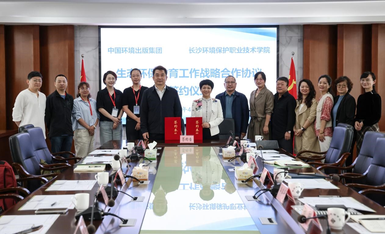 在“生態環保教材編寫營”活動期間,出版集團與長沙環保學院商議并簽署《關于進一步加強生態環保教育工作戰略合作協議》,雙方將緊緊圍繞推進美麗中國建設,加強深度合作,切實提升生態環境保護工作的傳播力、引導力、影響力和公信力。